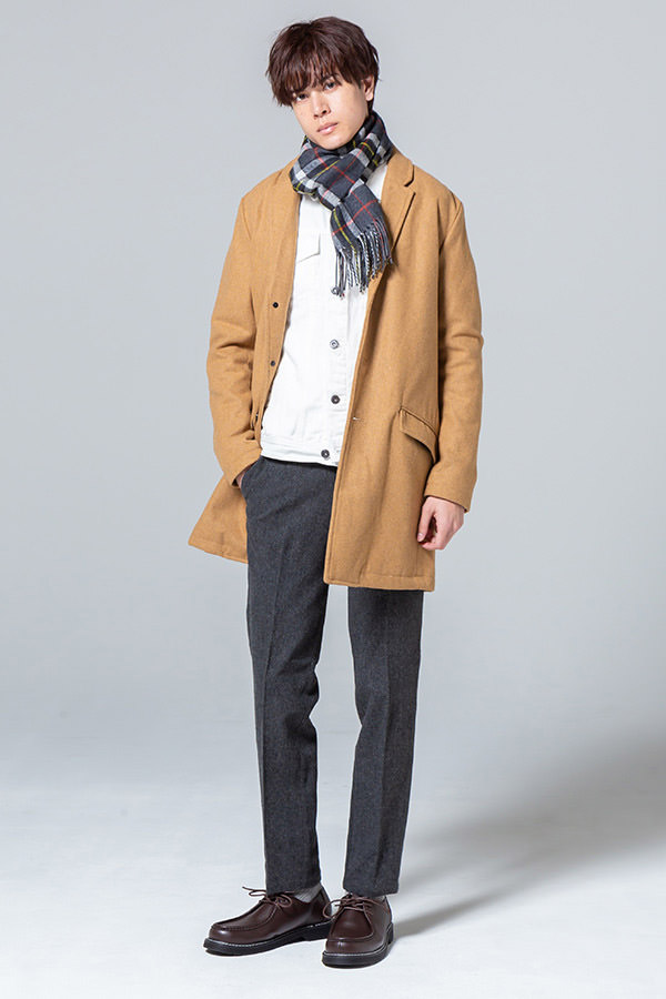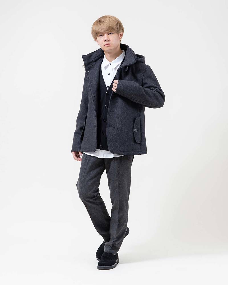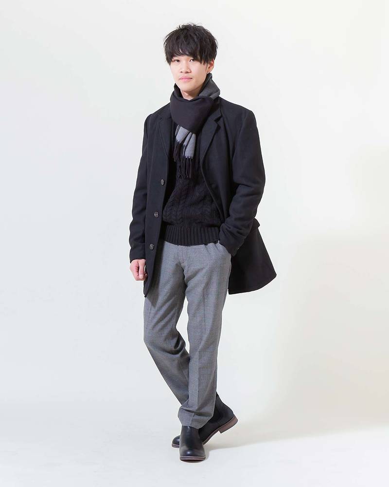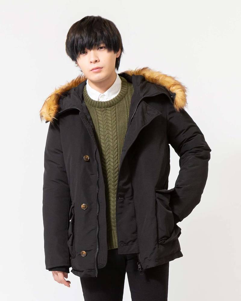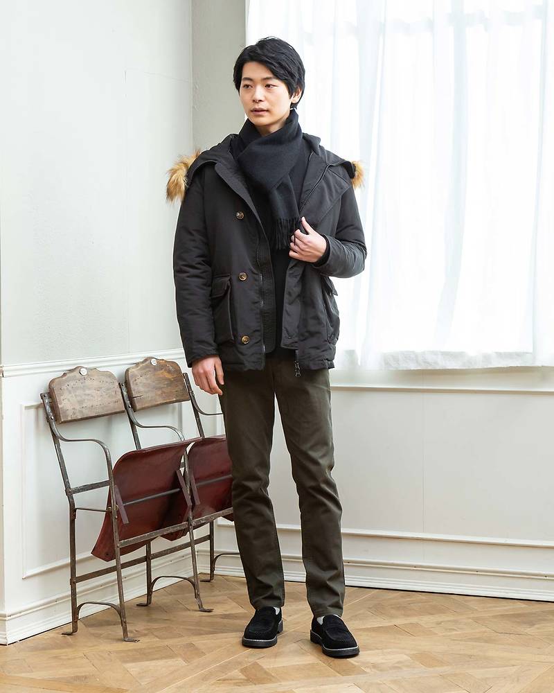 ファーに特徴があるので、マフラーをあえて暗めにして落ち着いた男性のイメージになっています。