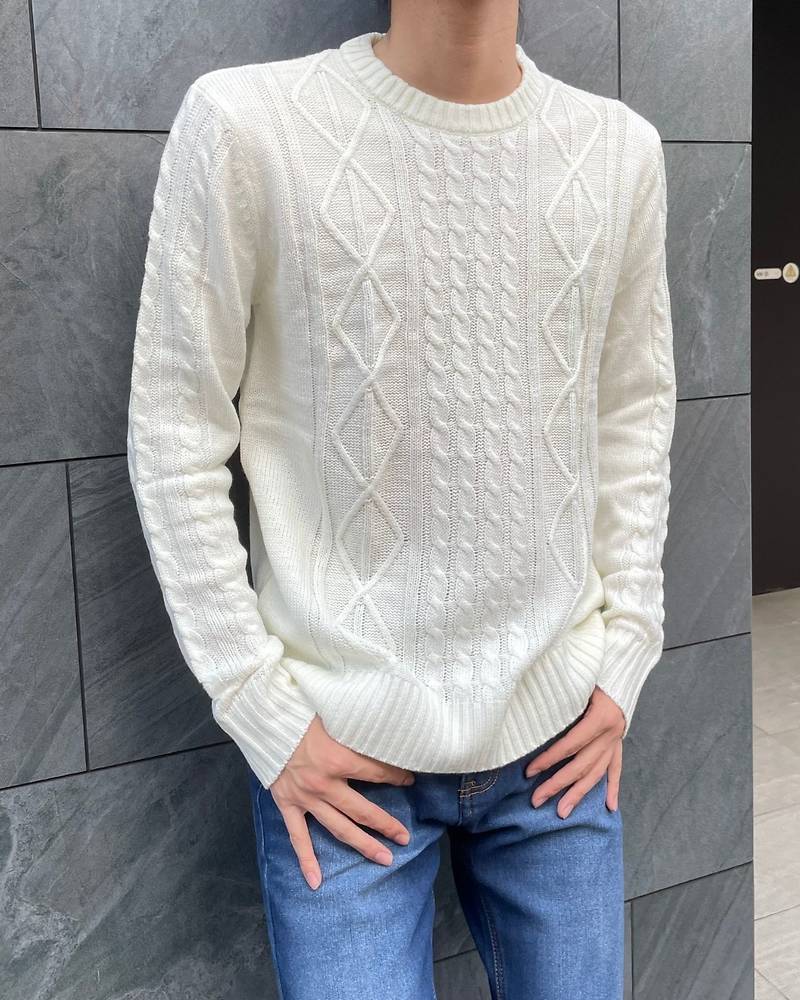 白セーターの清潔感とシャツを合わせると可愛らしい印象になって女性の人気は非常に高いコーデです。