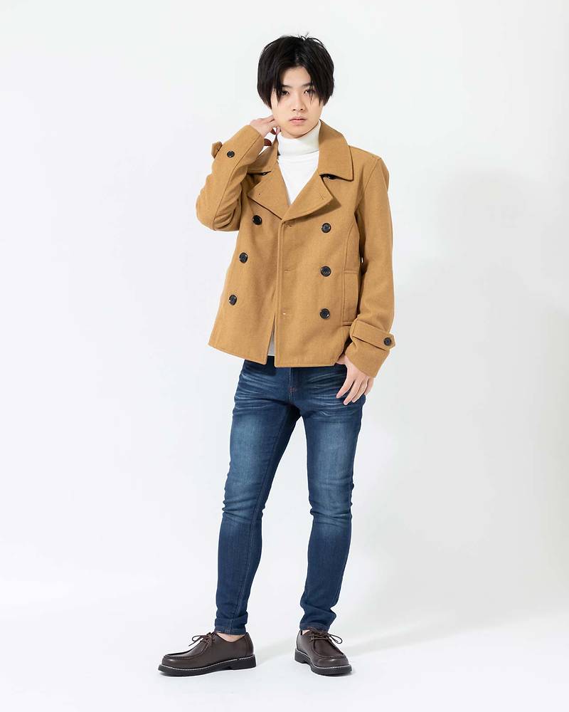 【7:Pコート×白タートルセーター】