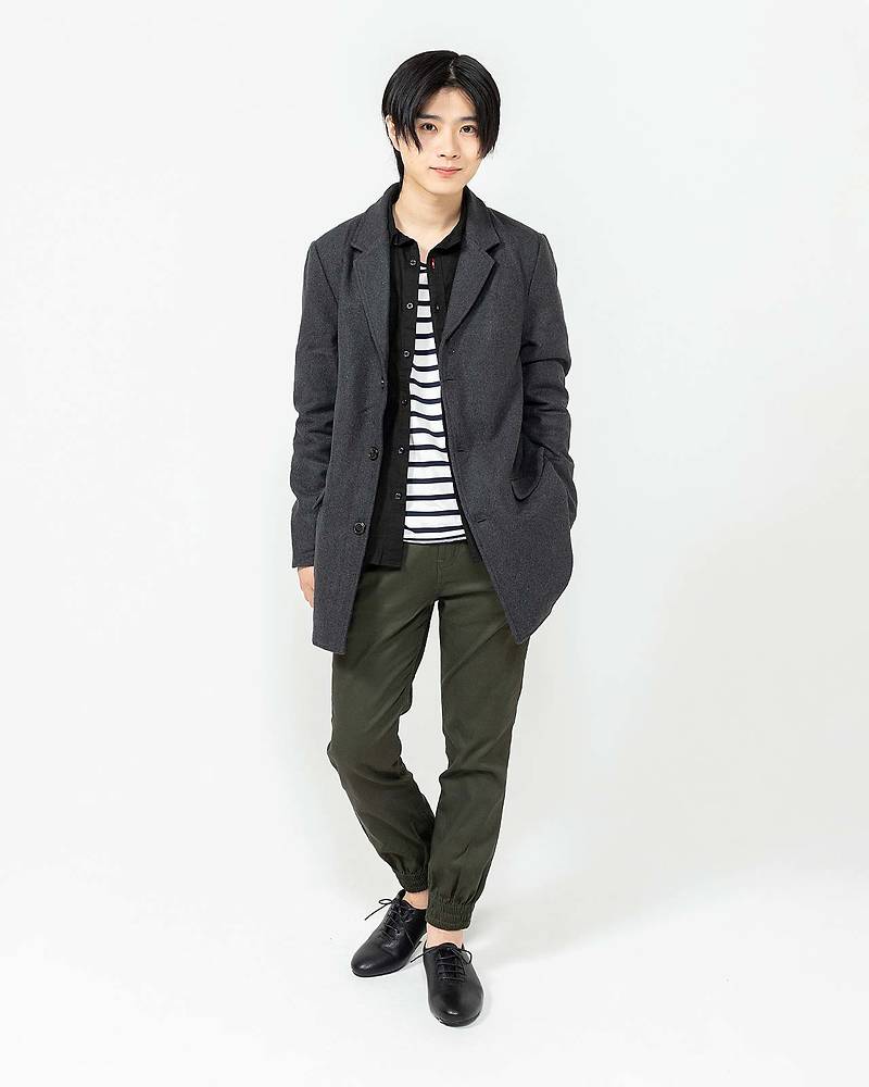 黒い長袖シャツとチェスターコートを羽織ることで、大人の雰囲気を崩さずにまとめています。